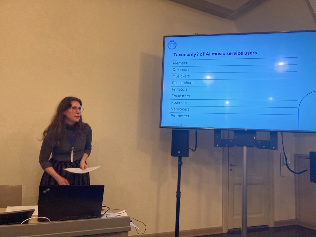 Between 8-10 October 2024, I attended the Nordic-Baltic Network Conference of the International Council for Traditional Music and Dance in Helsinki, Finland – The Past, Present and Future of Ethnomusicology in the Nordic-Baltic Region. I presented a paper by Bob L. T. Sturm and me, “Why make music with AI? Potentials in ethnographic studies of AI music service users”. The paper discusses the values and motivations of people using AI to create music. Through online ethnographic work of Discord servers and interviews with several AI music service users, we have found that many users of these services find value in working with music in ways that are not apparent from the advertising of the companies, i.e., a streamlined push-button-composition-to-distribution pipeline.